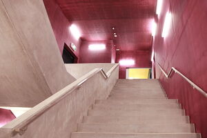 Dans les cages d’escalier, les visiteurs sont accueillis par le traitement de surface brillant faceal Colour Metallic Gold. En contraste complémentaire, on trouve un violet intense. Dans les halls d’exposition eux-mêmes, les murs en béton sont traités dans un agréable ton gris faceal Colour. Ils créent un arrière-plan calme pour les présentations colorées:
